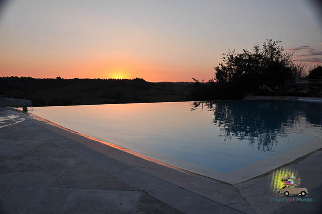 Por falar em Toscana, nenhuma foto, nenhum vídeo, nada te prepara para a beleza do lugar. A Toscana, com os seus tons de verde e marrom, nos encantou desde a primeira vista. Como chegamos no hotel no final da tarde, nos deparamos com o período do dia que eu mais gosto de fotografar. Fomos direto para a região da piscina para apreciar o por do sol de lá. Que lugar mágico!