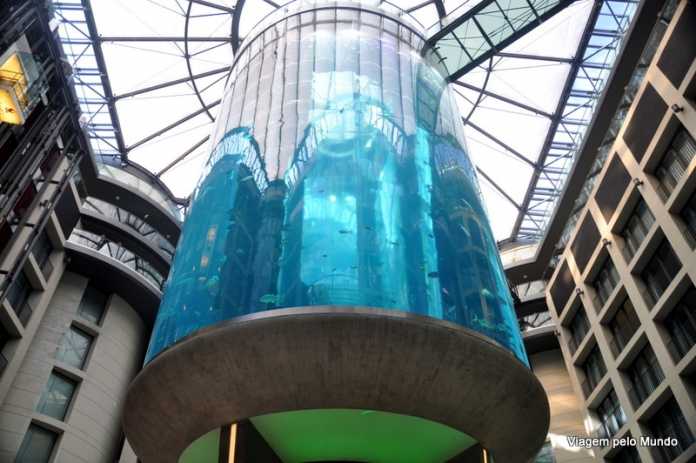 O AquaDom, como é chamado, fica dentro do hotel Radisson Blu, logo no hall de entrada. Ele tem 25 metros de altura e abriga mais de 50 espécies de peixes tropicais. Para entrar nele assim como o Wagner Moura fez no filme, só se você for um funcionário mesmo.