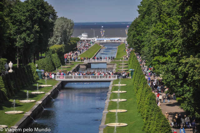 Dessa forma, se eu puder te dar uma dica seria: vá para Peterhof de ônibus, pois assim você chega na parte superior. Na volta, se quiser mais rapidez e conforto, pegue o barco. Assim você paga uma entrada só.