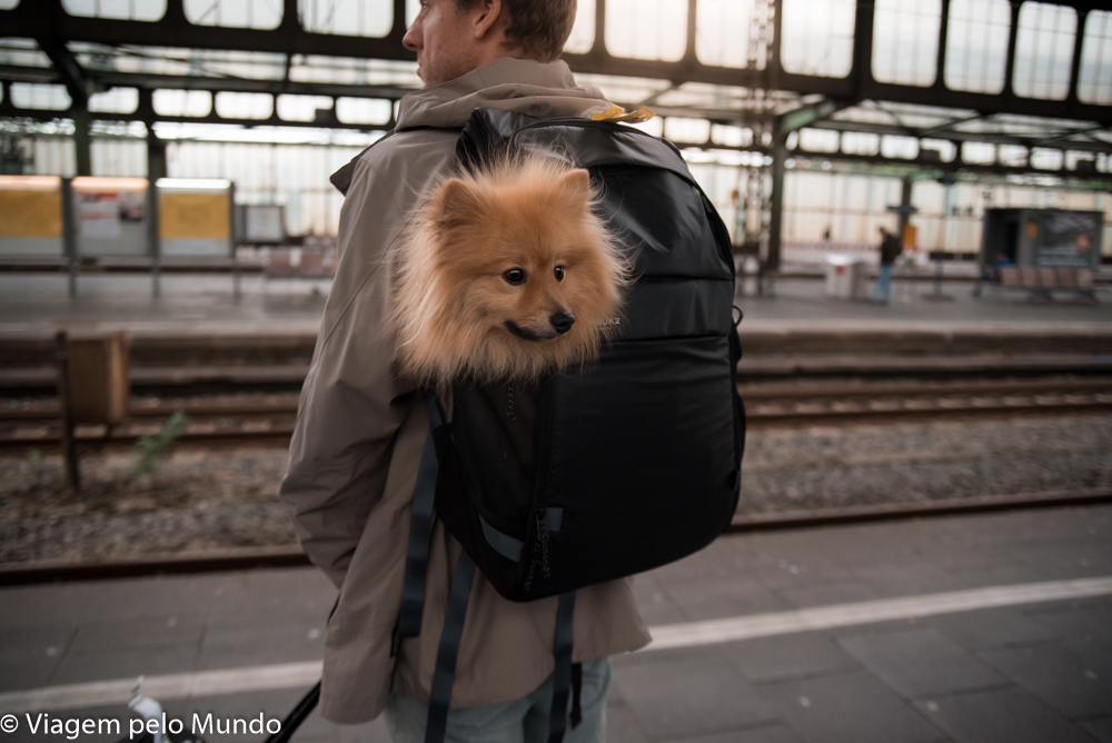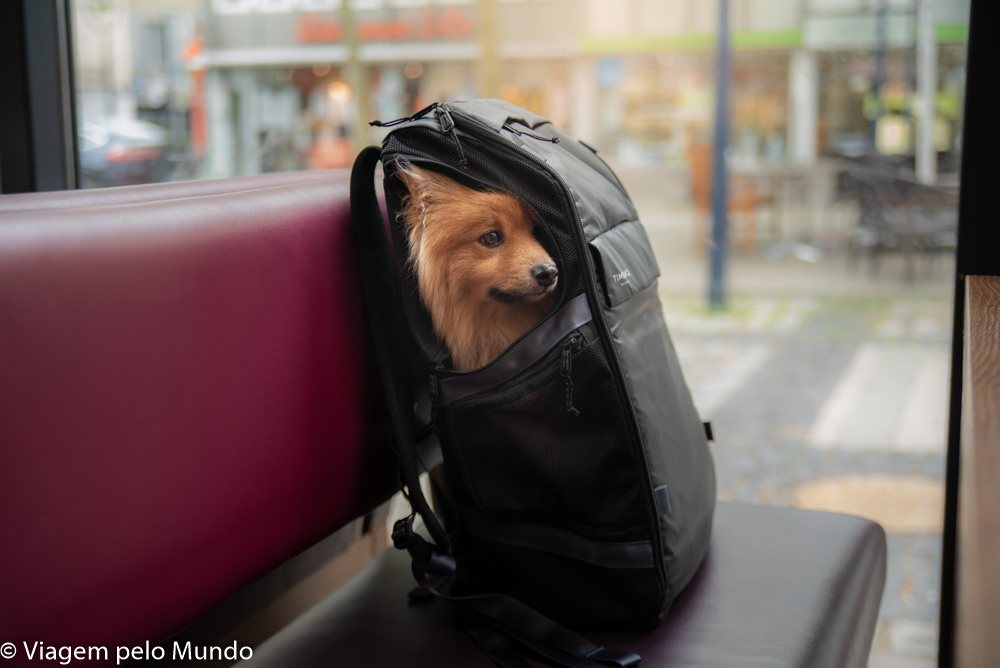 O Wurst amou a bolsa e dormia super relaxado nela. Dentro dos trens alemães, cães pequenos dentro da bolsa não pagam. E que gracinha que era ver ele dormindo relaxado dentro dela!